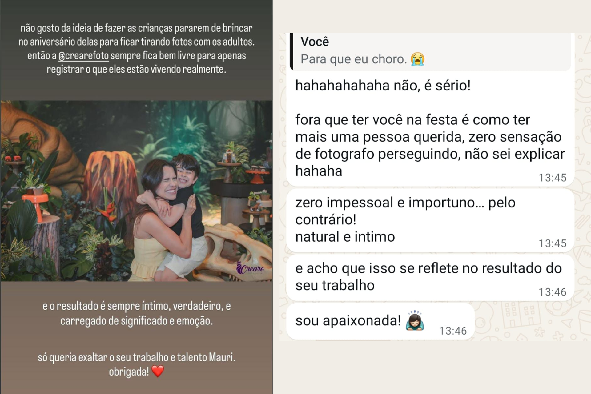 Esta sou eu, Mauri Tavares, fundei a Creare fotografia em 2015. Premiada no maior concurso de fotografia de família do Brasil e destaque por 4x na Inspired Magazine, revista de uma associação internacional conceituada no ramo de fotografia de criança e família, vencedora do prêmio melhores do ano pela inclusão de PCDs.
