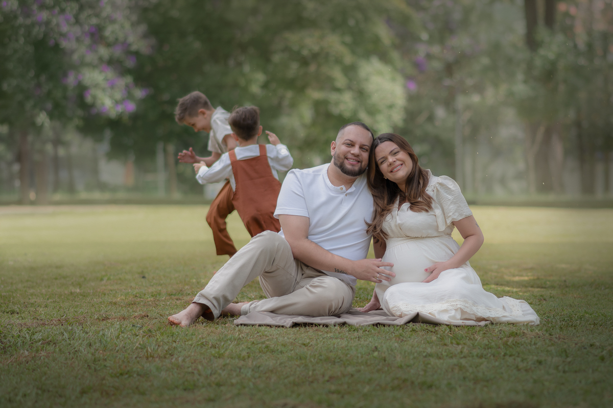 Escolhemos o Parque Chácara Silvestre como cenário para o ensaio fotográfico gestante, permitindo que as crianças brincassem livremente enquanto as fotos eram feitas de forma natural e espontânea. O resultado foi uma atmosfera leve, cheia de vida, conexão com a natureza e movimento.