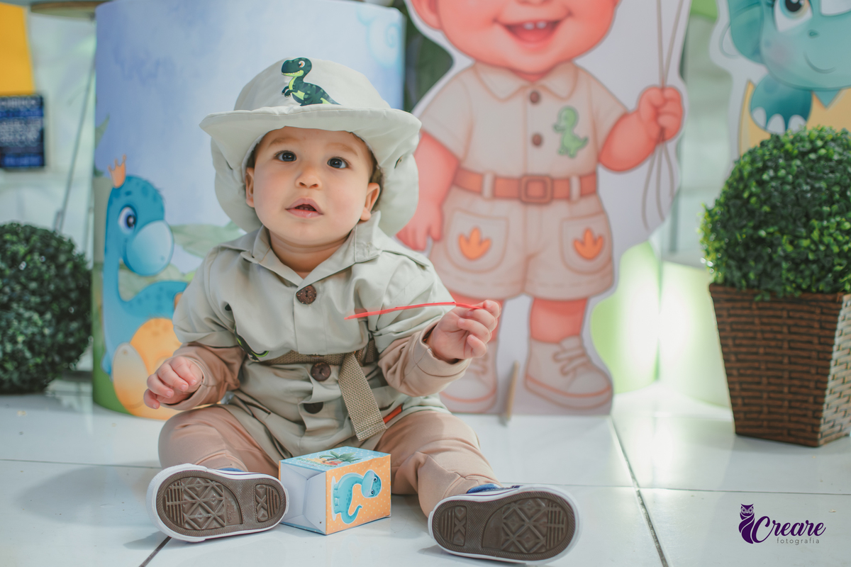 fotografia de aniversário de um aninho com tema Dino baby. Fotógrafo de aniversário de um ano no buffet espaço bando em Mauá. Fotógrafo em mauá para aniversário de 1 ano.