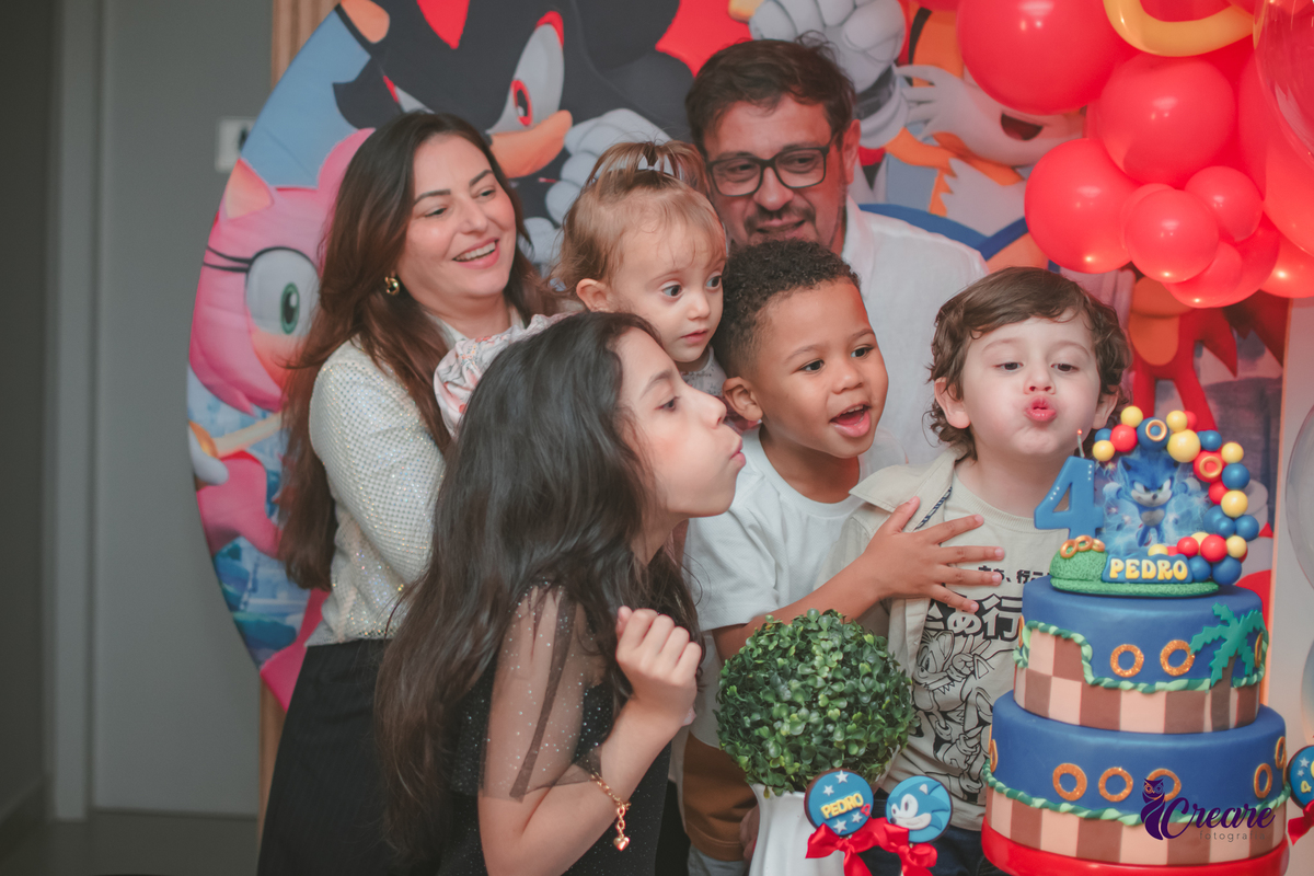 Aniversário de menino de 4 anos, festa infantil em São Bernardo do Campo. Decoração com tema Sonic, festa em casa.