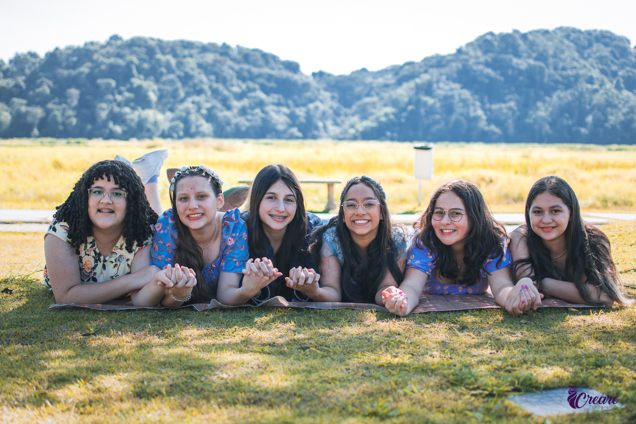 Assim como a Nayara da foto acima, após o ensaio no Castelo dos Lagos, a Pétrea juntou as melhores amigas e fez um piquenique no Parque Oriental de Ribeirão Pires.