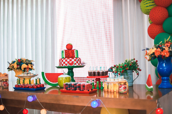A fase de 1 ano coincide com a introdução alimentar, então o tema frutas conversa perfeitamente com esse momento da vida do bebê.